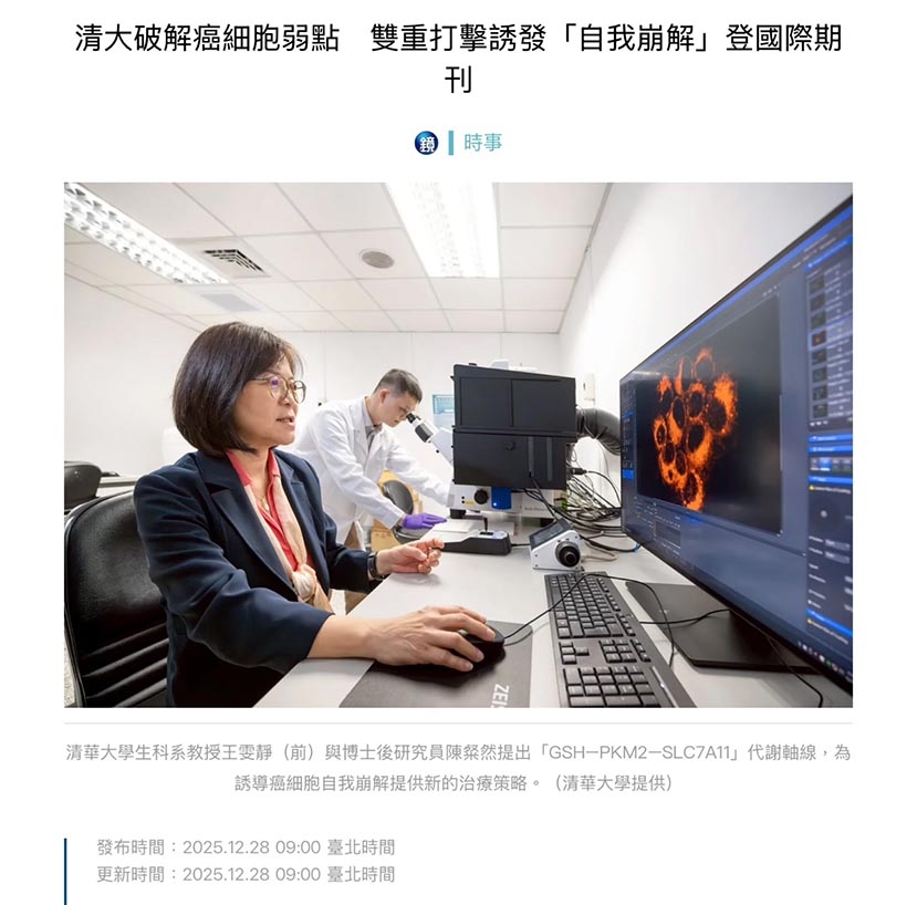 清大破解癌細胞弱點 雙重打擊誘發「自我崩解」登國際期刊