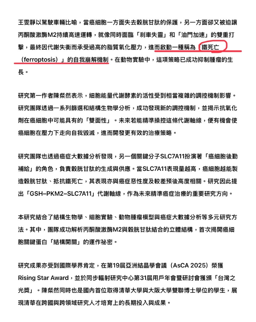 清大破解癌細胞弱點 雙重打擊誘發「自我崩解」登國際期刊