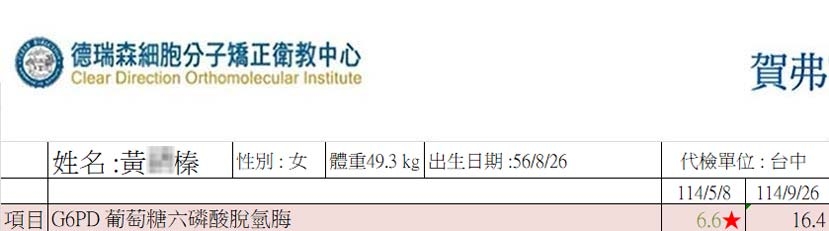 ※ G6PD 7.9 以下為蠶豆症