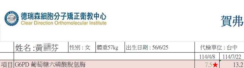 ※ G6PD 7.9 以下為蠶豆症