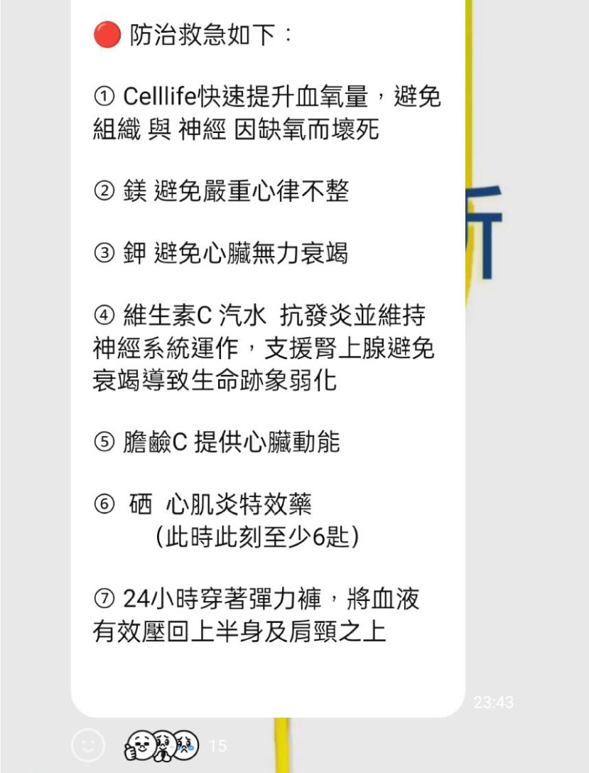 腦中風預防重於治療 9大重點 天氣寒冷, 血管收縮, 心臟衰竭 血液壓不回上半身 過不了肩頸⋯⋯ 頸動脈供血量不足 頭部血流緩慢, 腦循環變差, 容易凝血形成血栓 血栓 + 供氧量不足 易造成 各式「心因性梗塞」,導致器官組織的嚴重破壞:鬱血性心臟病、腦中風/腦梗塞、肺梗塞⋯ 等 🔴 防治救急如下: ① Celllife快速提升血氧量,避免組織 與神經因缺氧而壞死 如何立即提升血氧止喘?血氧機如何判讀? http://www.hofferclinic.com/qna_detail.asp?cat=50&deid=868&hfpwd=hf0301ic ② 鎂 避免嚴重心律不整 自律神經總教導 : 骨鬆 與 高血鈣症 / 鎂、鉀缺乏症候群 (自律神經與礦物質相關衛教) http://www.hofferclinic.com/qna_detail.asp?cat=39&deid=295&hfpwd=hf0301ic ③ 鉀 避免心臟無力衰竭 血鉀偏低,心臟無力,心慌意亂,坐立不安,補充葡萄糖酸鉀 BT-kl/ 血鉀過高,心跳怦動不適 http://www.hofferclinic.com/qna_detail.asp?cat=39&deid=1046&hfpwd=hf0301ic ④ 膽鹼C 提供心臟動能 (依體重每日至少4~8條) + 維生素C 汽水,抗發炎並維持神經系統運作,支援腎上腺避免衰竭導致生命跡象弱化 膽鹼C主動傳輸原理及功能衛教說明 http://www.hofferclinic.com/qna_detail.asp?cat=57&deid=1357&hfpwd=hf0301ic ⑤ 硒 心肌炎特效藥 (依體重每日至少6 ~8匙) 心肌炎/留意接種/染疫/流感/長新冠導致心肌炎 http://www.hofferclinic.com/qna_detail.asp?cat=32&deid=1196&hfpwd=hf0301ic ⑥ 有心臟衰竭疑慮者,冬季平日應全日穿著彈力褲,將血液有效壓回上半身及肩頸之上 細胞分子矯正衛教單5B-逆轉心臟衰竭 http://www.hofferclinic.com/qna_detail.asp?cat=48&deid=1026&hfpwd=hf0301ic ⑦ Omega3 亞麻仁油、維生素E平日留意補足有效而無藥害的抗凝血機制 心絞痛總檢討/化血栓:Ω3與維生素E http://www.hofferclinic.com/qna_detail.asp?cat=8&deid=51&hfpwd=hf0301ic ⑧ 🔴 靜脈注射: 維生素C + 谷胱甘肽 + 銀杏 直接從血管下手,這是目前為止,最好最有效的中老年人中風防治及日常保養! 銀杏注射功效與抗癌 http://www.hofferclinic.com/qna_detail.asp?cat=49&deid=1525&hfpwd=hf0301ic ⑨ 🔴 在中風後2周內的復原黃金期,一定要安排靜脈注射!️ 以有效防範必然隨之而來的二度中風 !! 頸椎錯位相關疾病總探討:高血壓、心臟病、中風、失眠、暈眩、頭痛、耳鳴⋯⋯ http://www.hofferclinic.com/qna_detail.asp?cat=54&deid=1262&hfpwd=hf0301ic