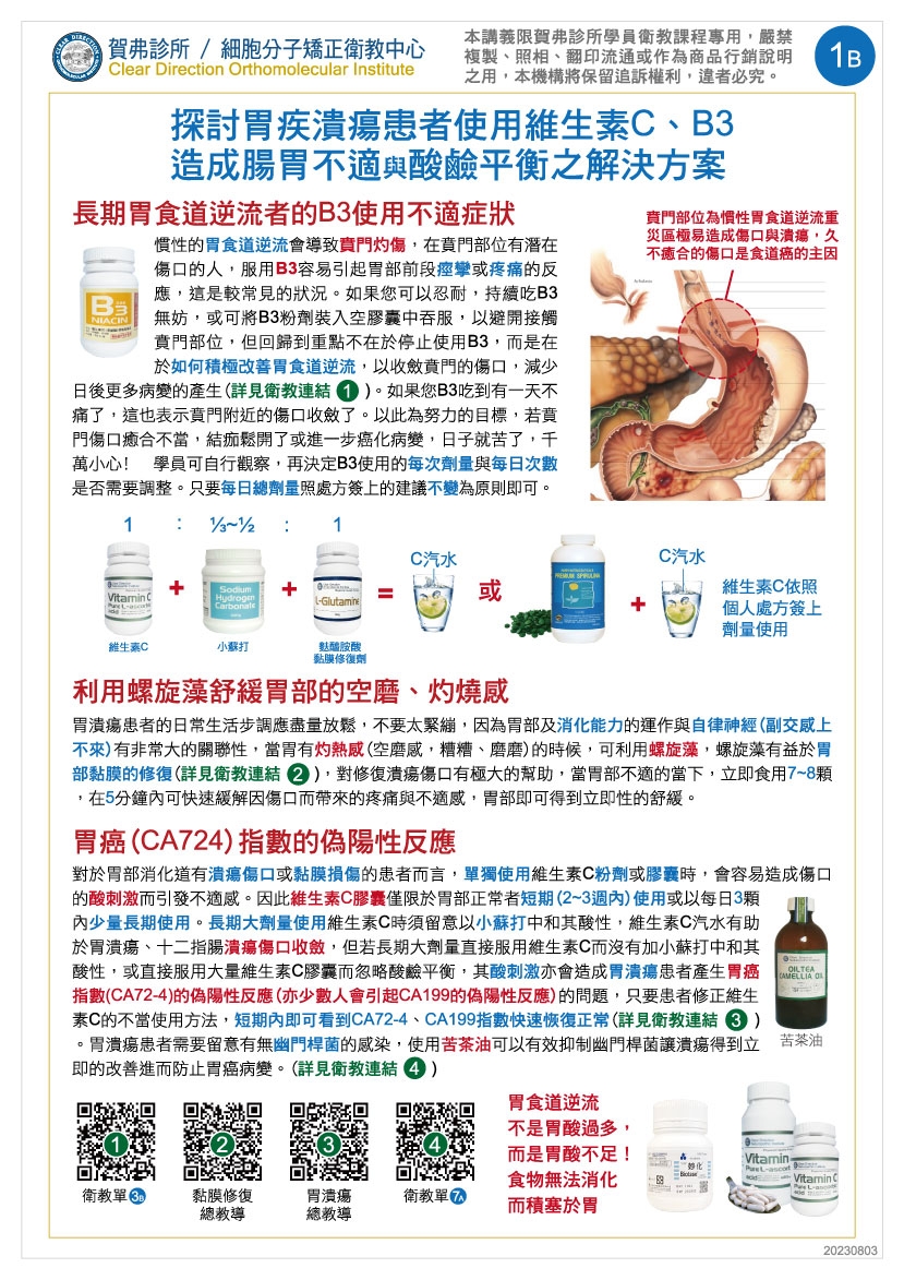 細胞分子矯正衛教單1B-探討胃疾潰瘍患者使用維生素C、B3造成腸胃不適與酸鹼平衡之解決方案