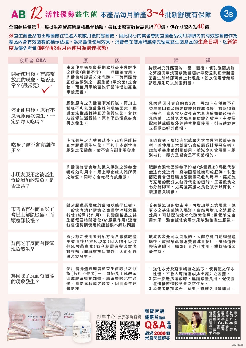 細胞分子矯正衛教單3B-AB12益生菌、消化酵素與蘋果醋