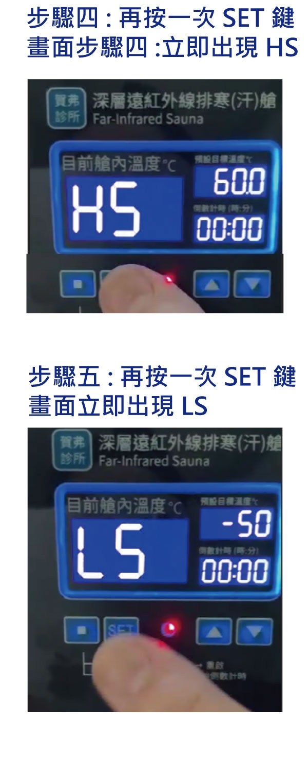 《註》以下為各項出廠設定值,使用遠紅外線排汗艙時