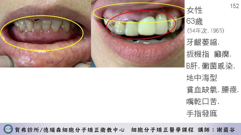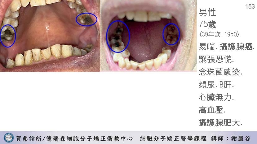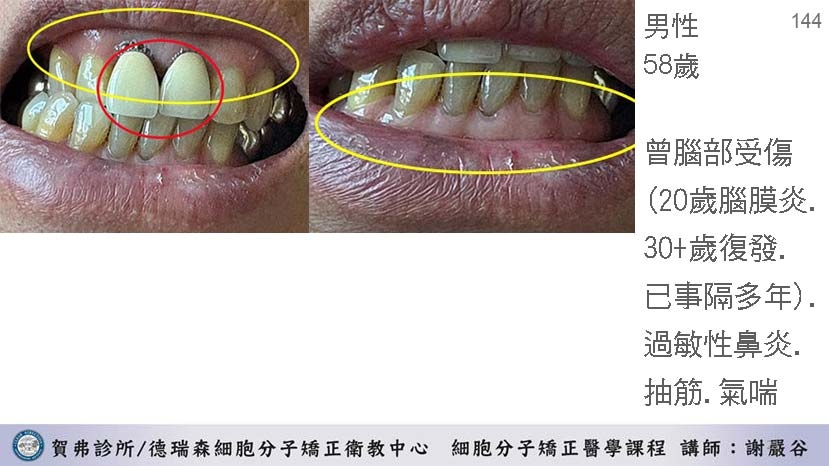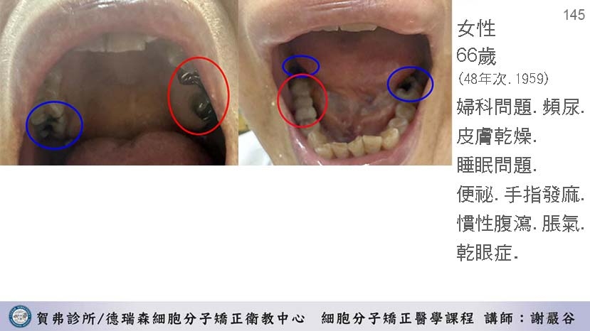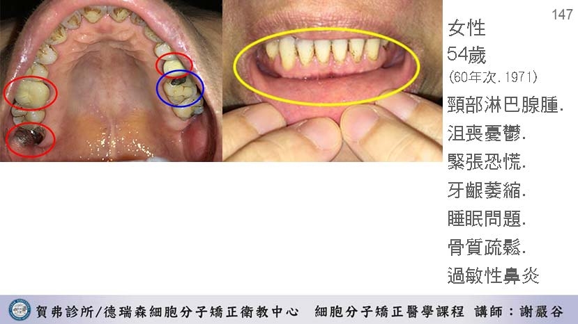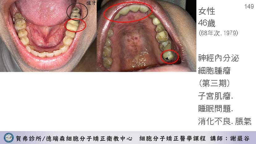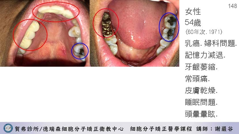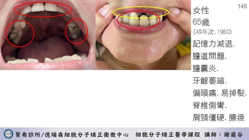 回想病發前,正在執行全口重建,牙周病齟齒治療⋯⋯上完謝老師的課,了解根管死牙對免疫系統的危害後,放棄自費牙周病治療與全口重建,直接拔掉5顆牙(含一顆門牙及大汞牙,見下圖) 徹底清理壞死組織及齒科毒素。