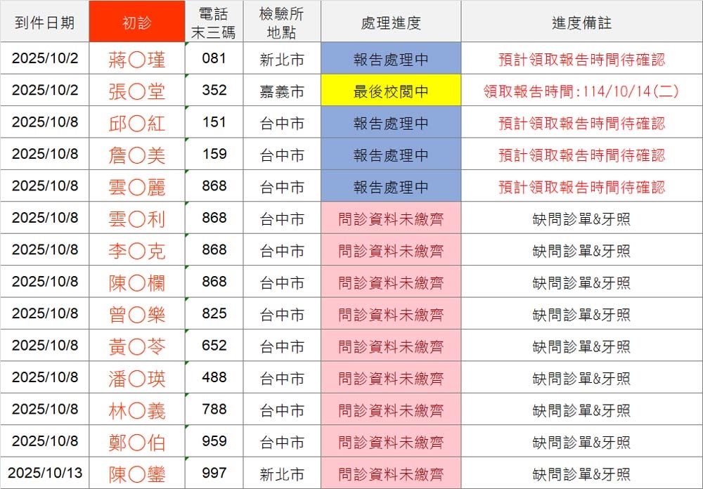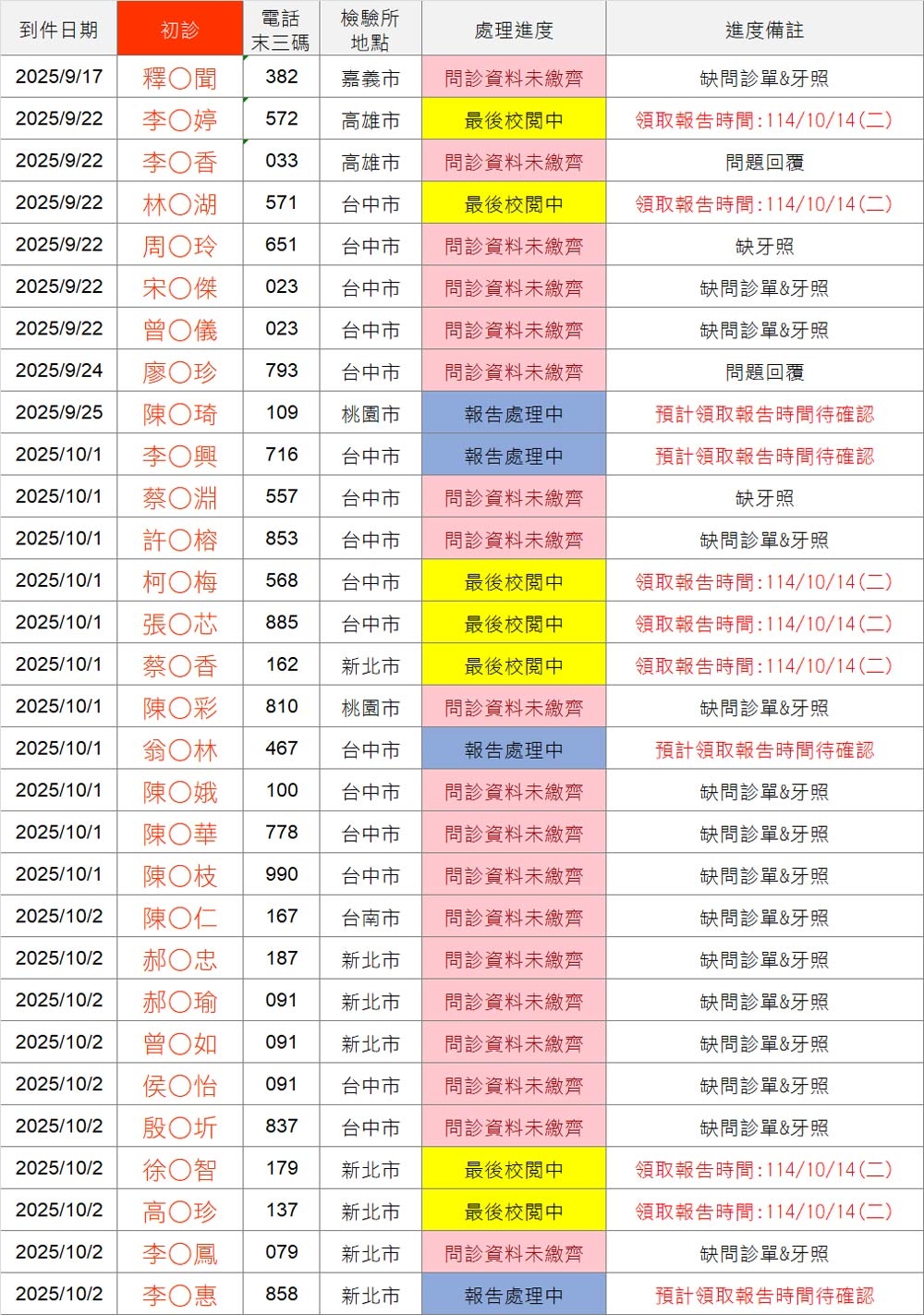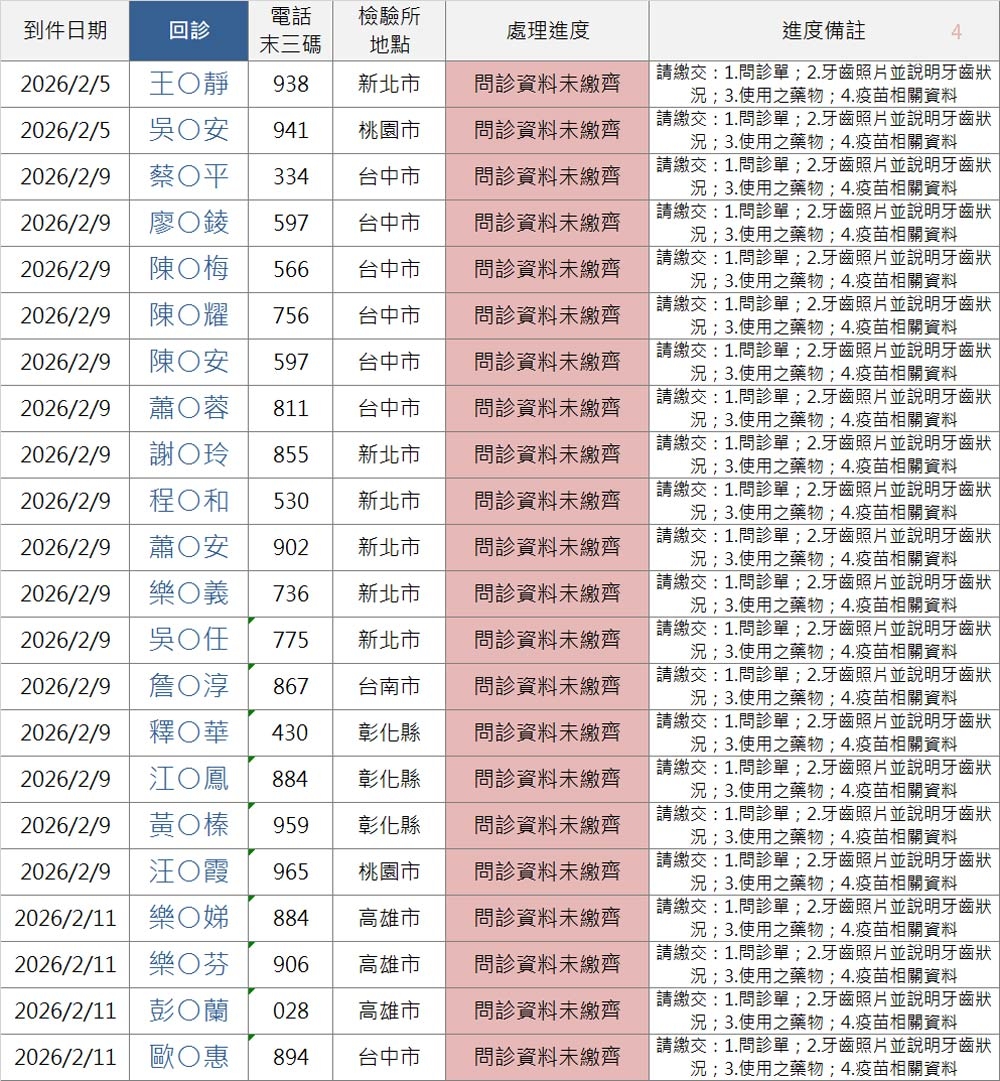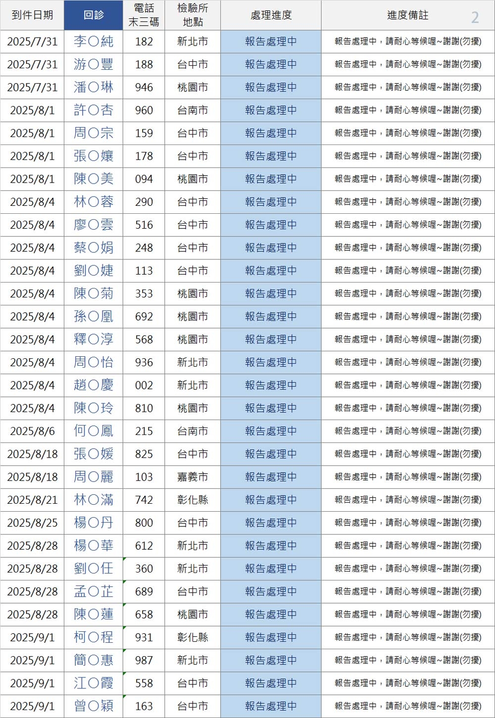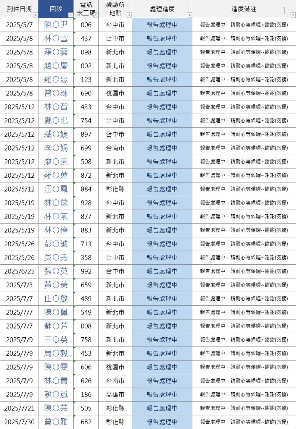 以上連結填寫之前請「先查詢下方表格」,確認您的地區檢驗所報告是否已到件