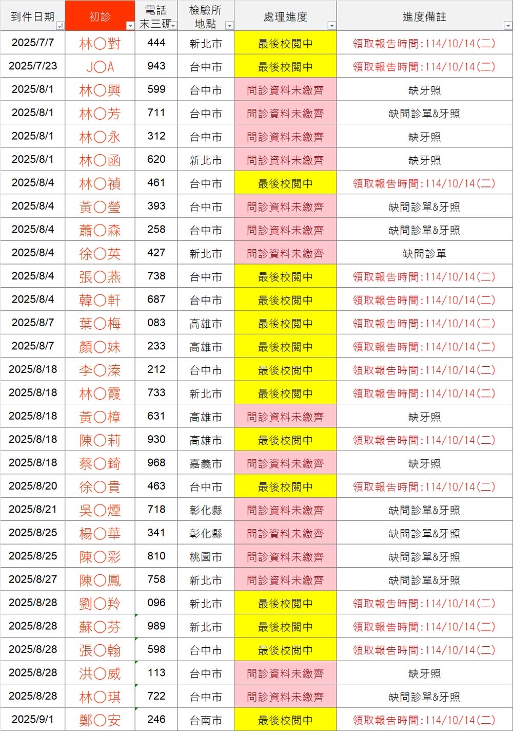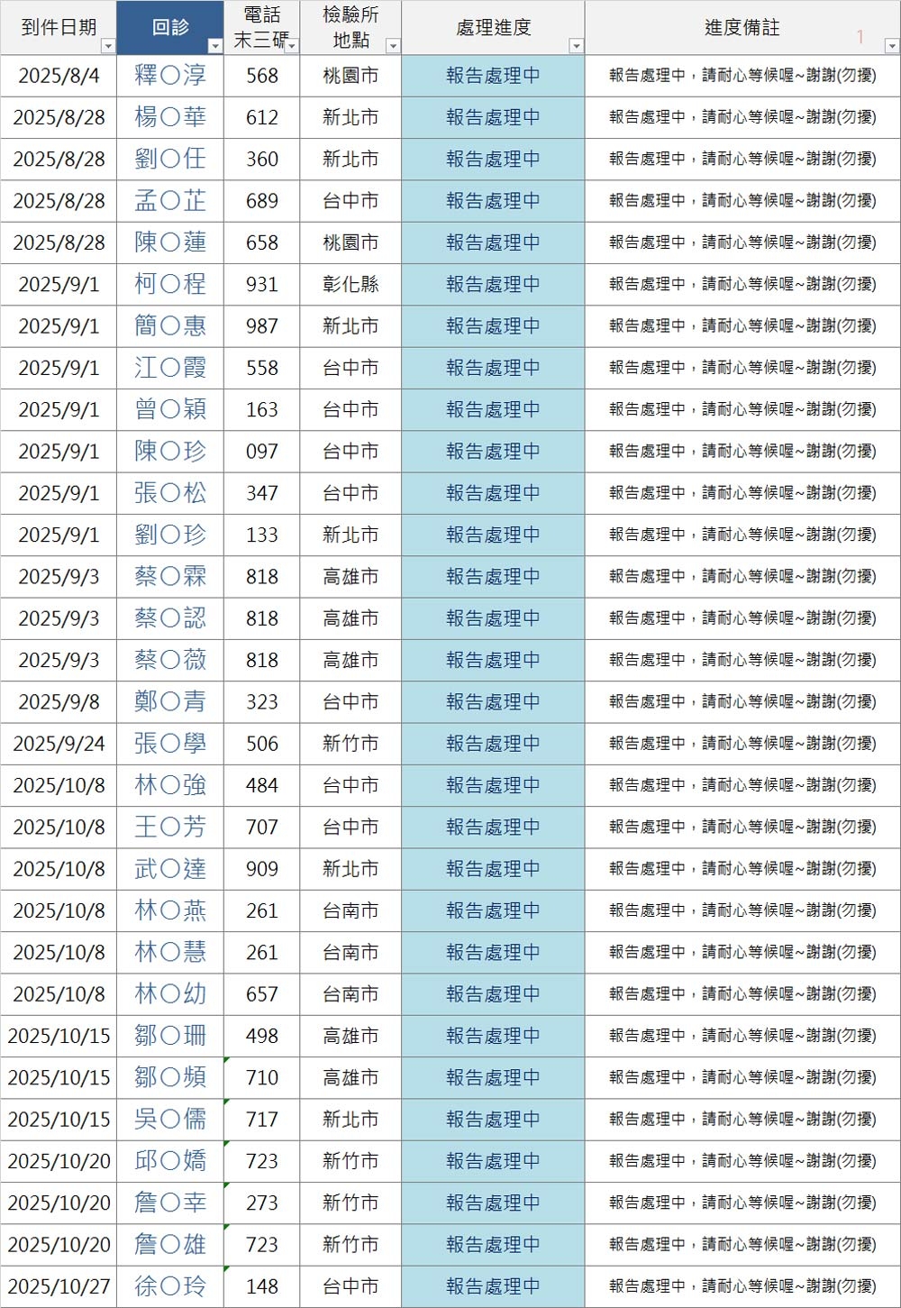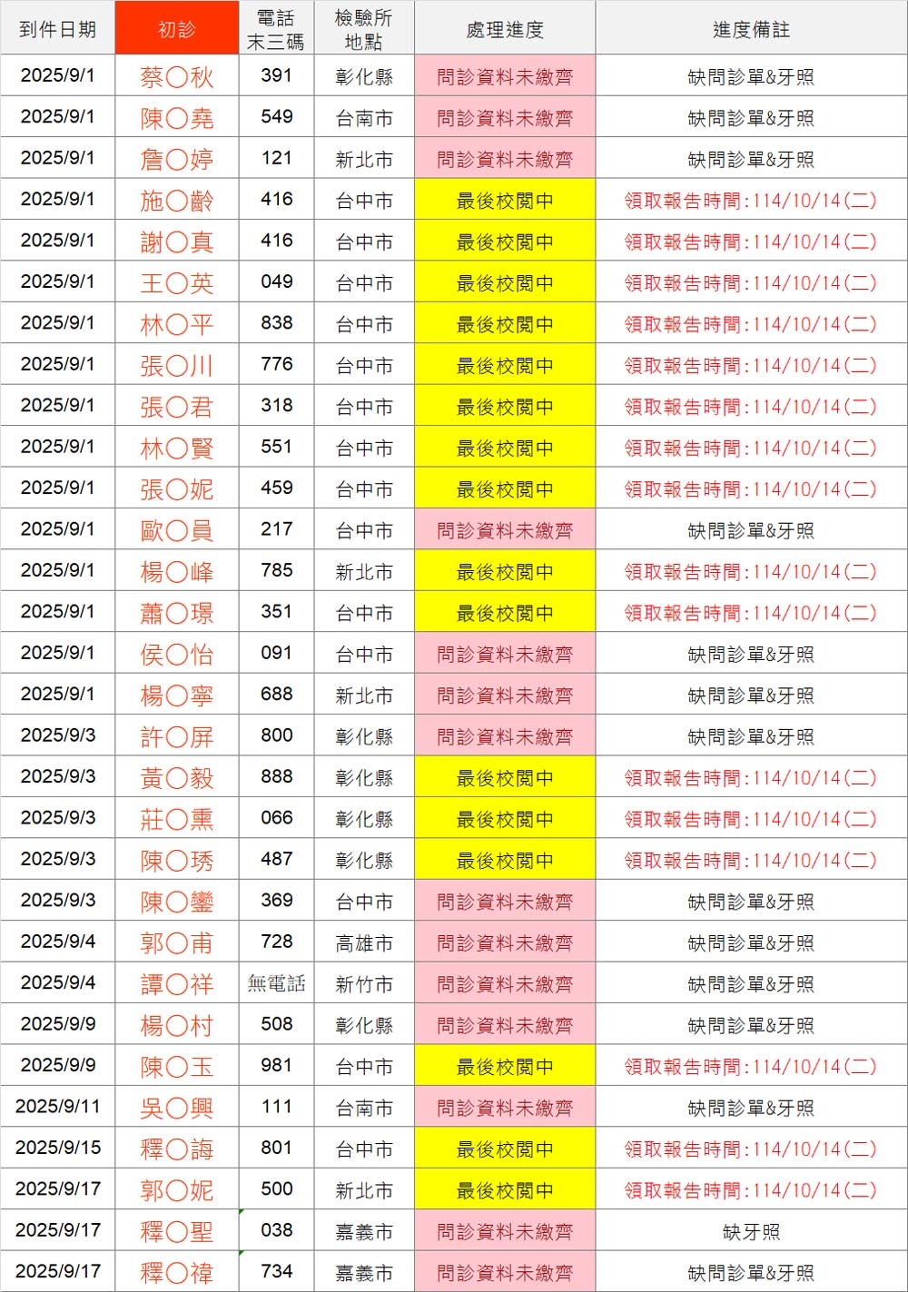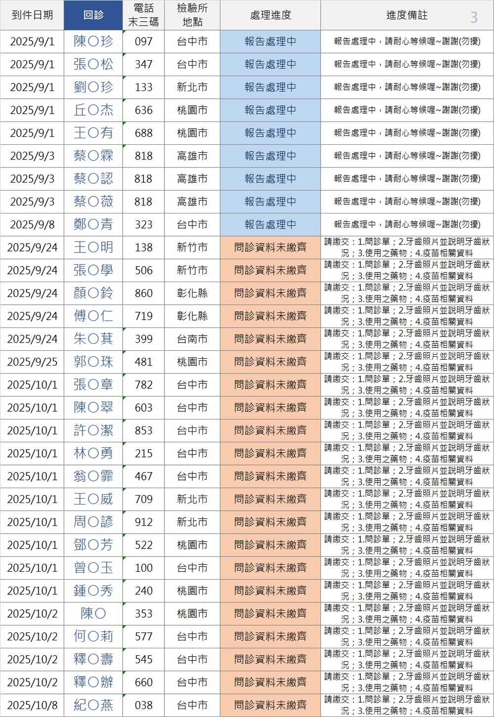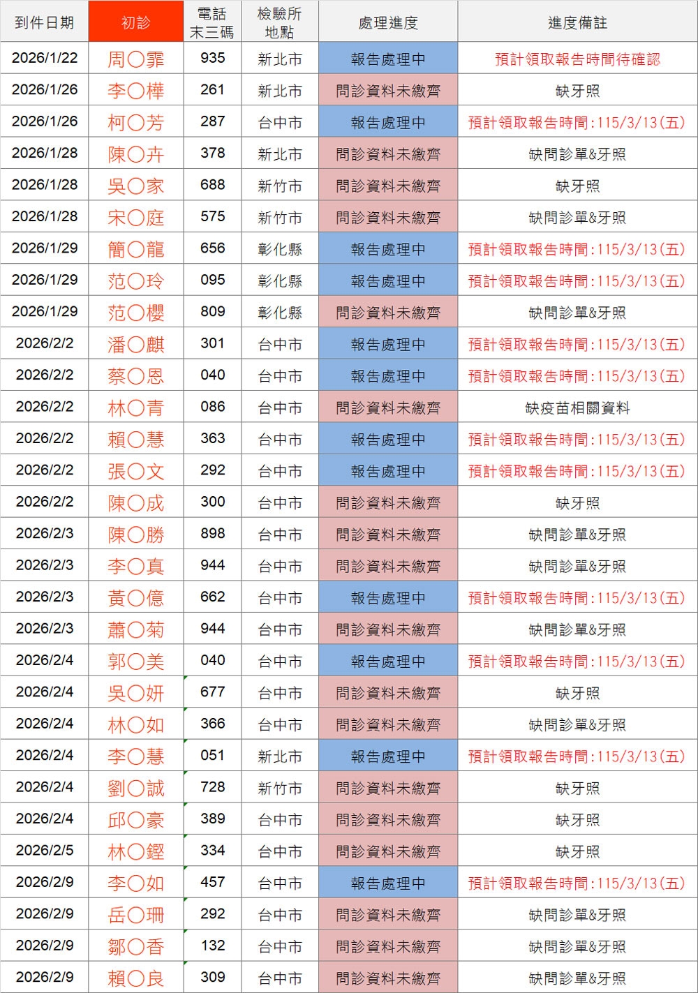 以上連結填寫之前請「先查詢下方表格」,確認您的地區檢驗所報告是否已到件