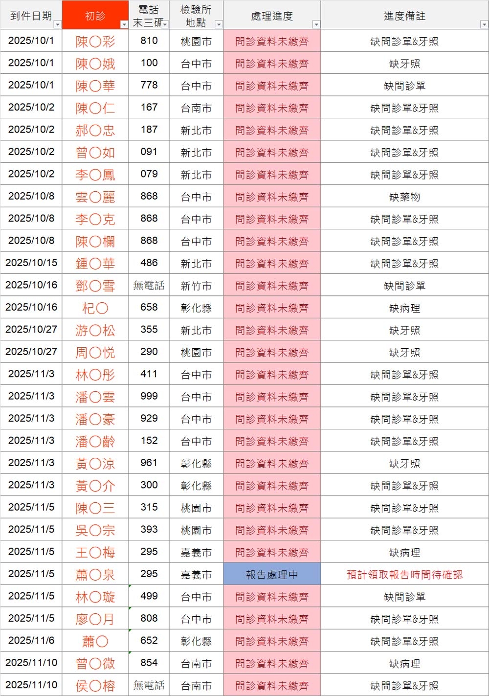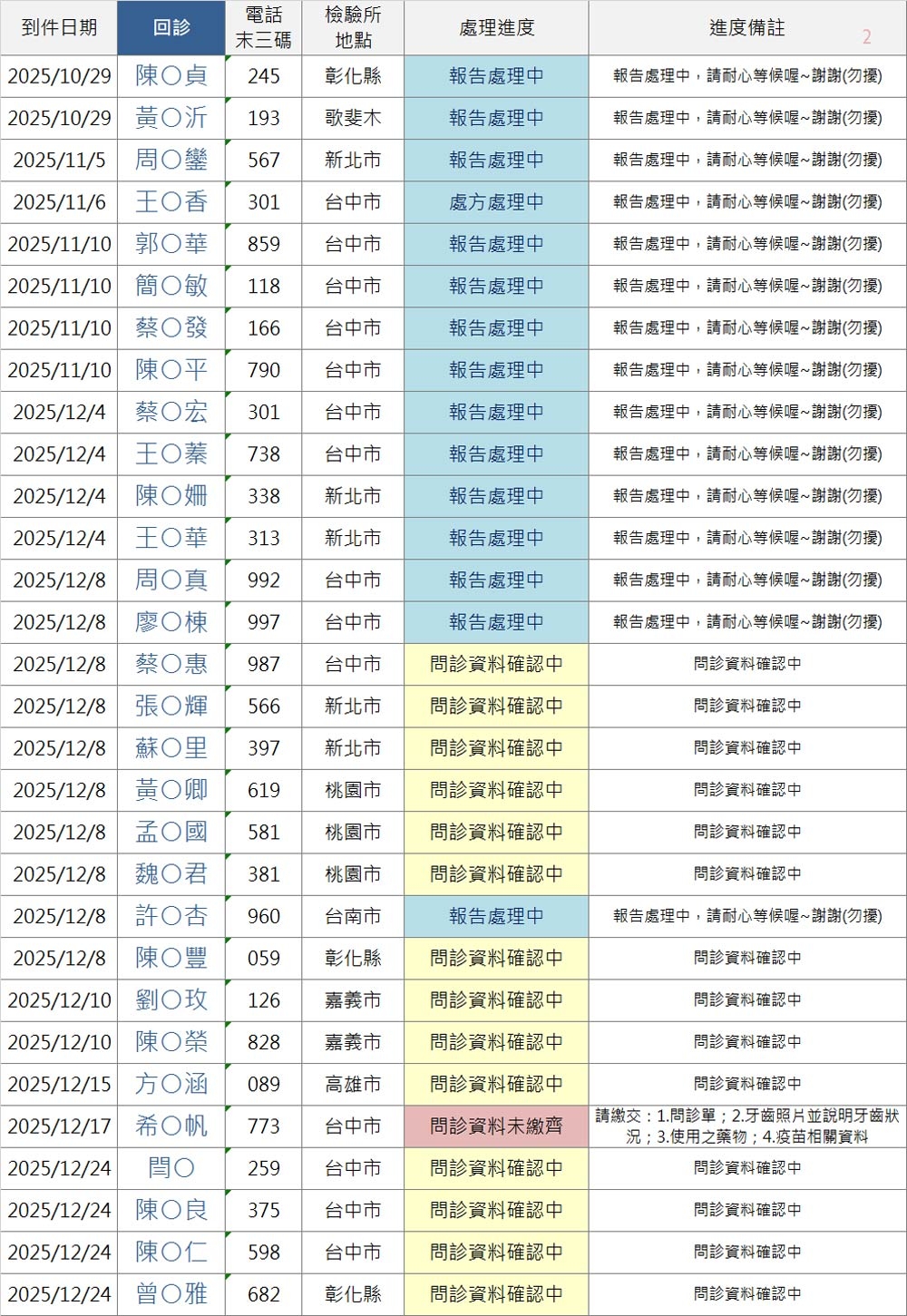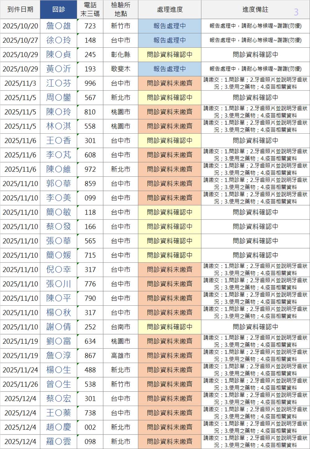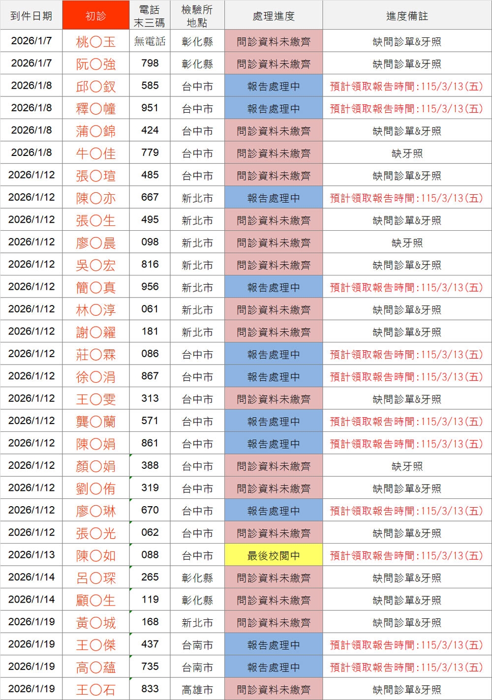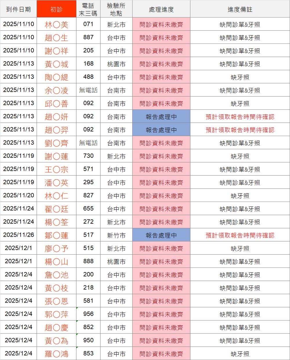 以上連結填寫之前請「先查詢下方表格」,確認您的地區檢驗所報告是否已到件